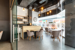 keramická dlažba, elektroinštalácia, vstupný sklenený portál, plne vybavená kaviareň vrátane spotrebičov a nábytku